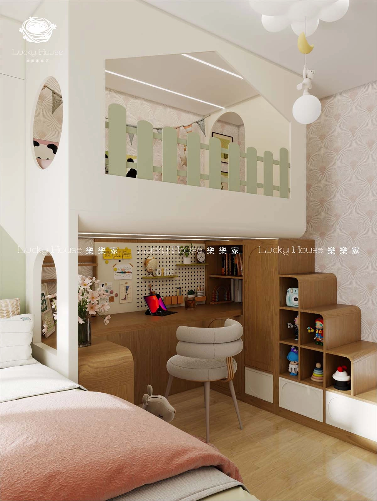 小朋友喺度有專屬閣樓、陽光睡房,爸媽有整齊收納、溫馨親子角,童年同生活質感一Take過提升。樂樂家呢套設計話畀大家知:只要識得訂製,細房都可以變成童話樂園,空間夠用用又好玩,童年就該咁閃亮!
