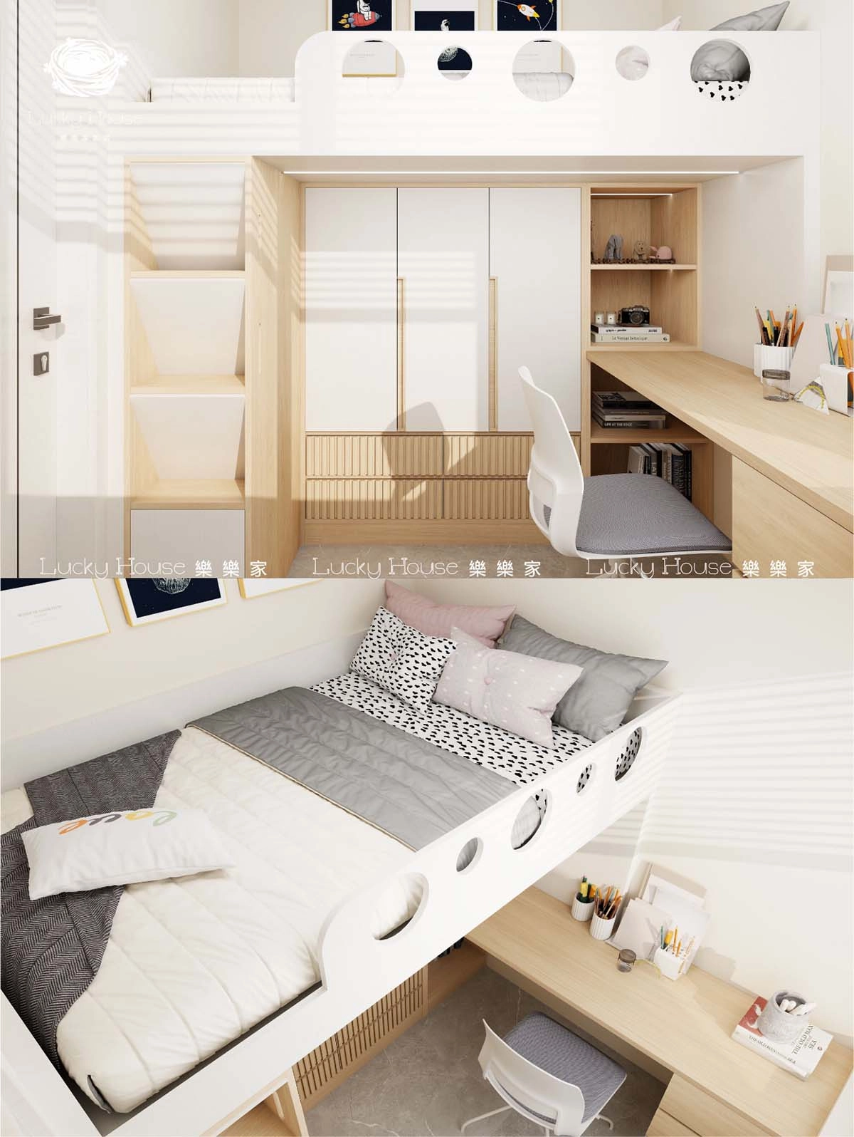 上床下櫃最適合小朋友房!上面係睡覺嘅地方,下面可以做衣櫃、書桌或者儲物空間。對於有小朋友嘅家庭,呢個設計慳位又安全,小朋友可以有自己嘅學習同儲物空間,又唔使擔心空間唔夠。而且設計靚靚,小朋友都鍾意。