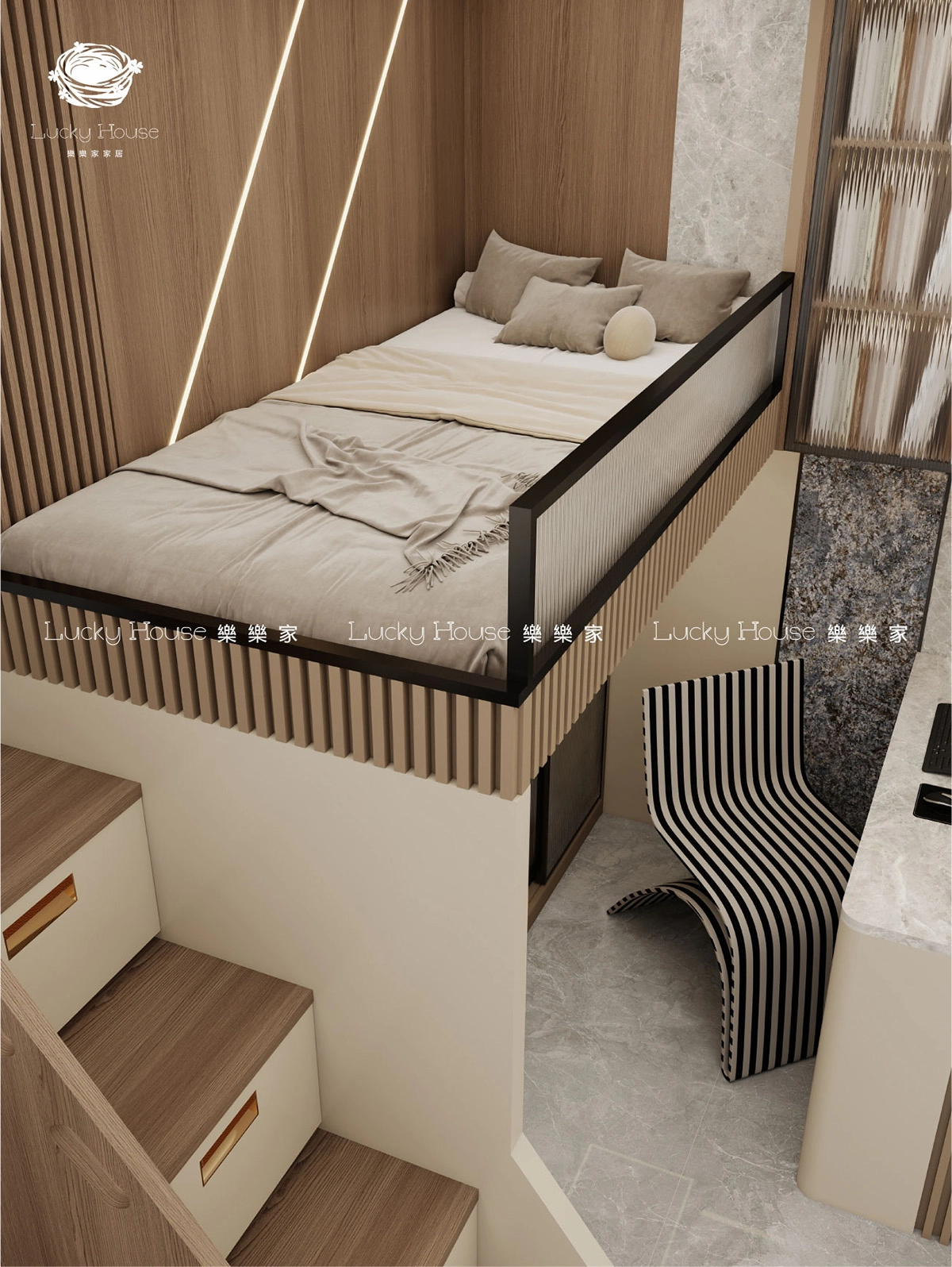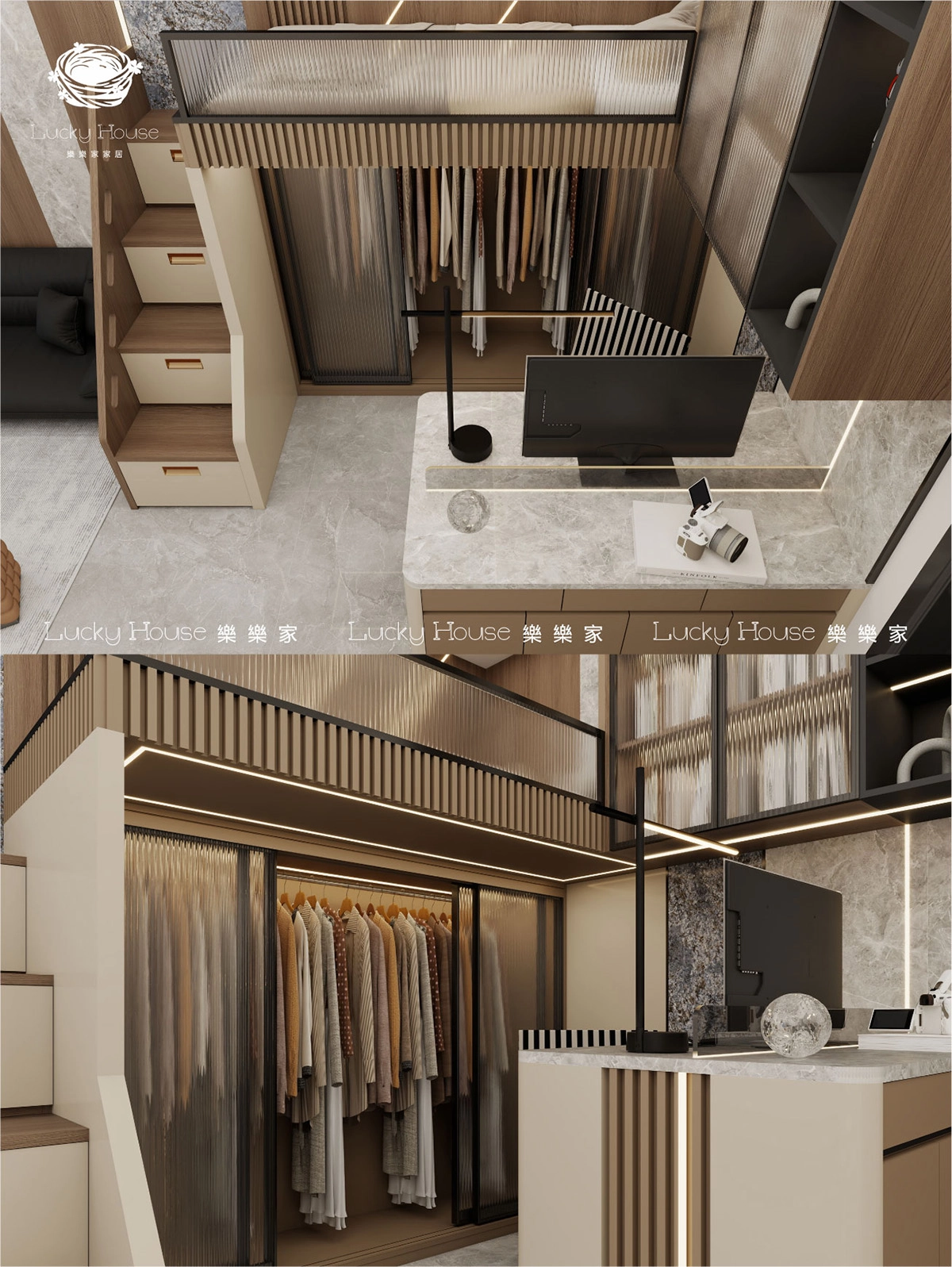 將「慳位+收納」發揮到極致:組合床上下分層,擴展空間;護墻板暗藏收納,美化客廳;工作台連吊櫃一體化,工作收納兩不誤;梯櫃收納零浪費,樓梯變儲物。無論係細單位定係迷你戶型,統統可以「對癥下藥」,將每一寸空間用到「盡絕」。住喺度,唔止收納充足,仲有滿滿嘅時尚感,簡直係細戶型嘅「夢想改造家」!唔使再為空間細而煩惱,樂樂家全屋訂製就係你嘅「蝸居救星」,慳位收納樣樣掂,實用又靚仔,香港人嘅「心水之選」!