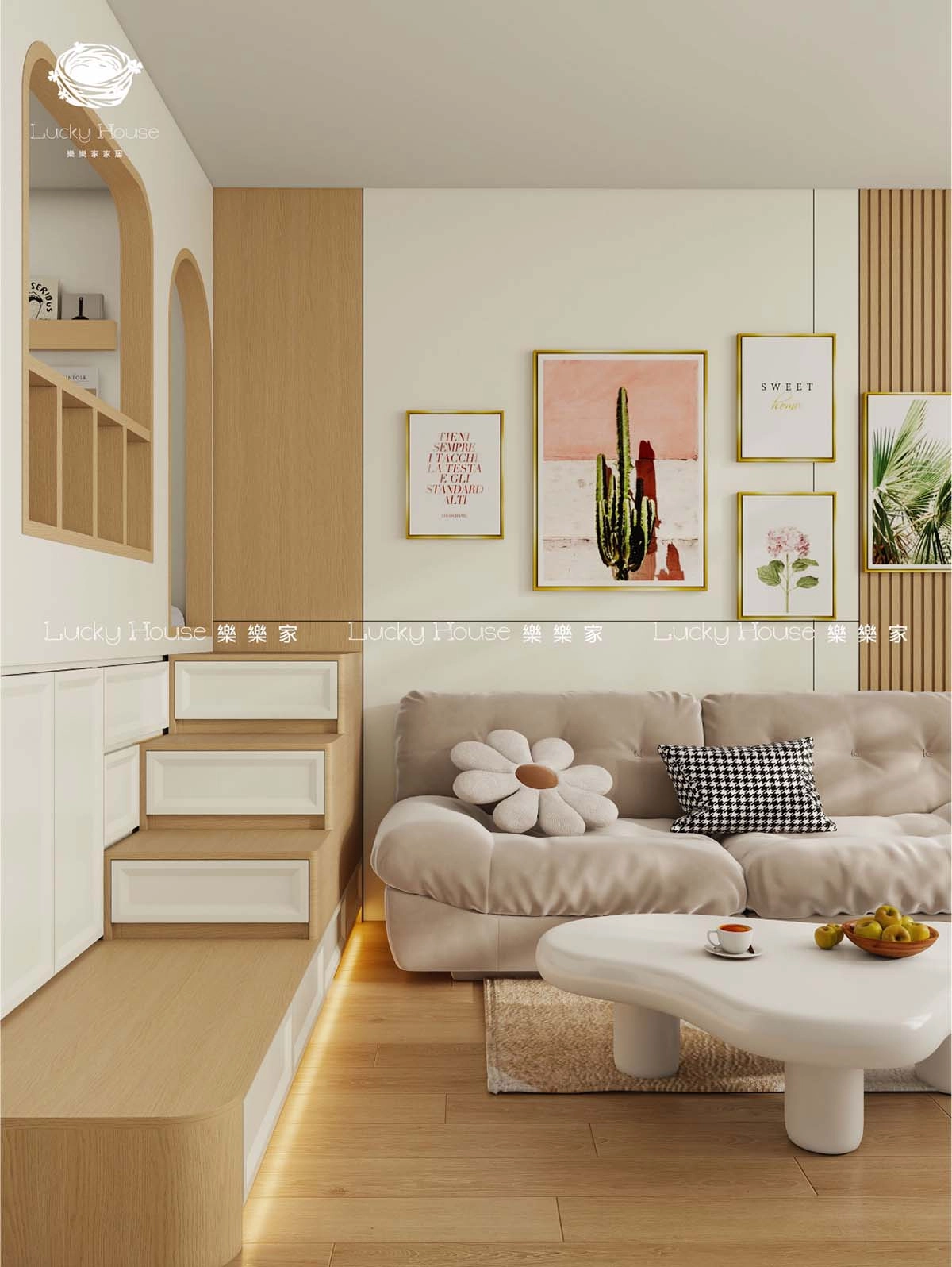 廳間房靠上床下櫃實現「睡眠+收納」雙重自由,玄關櫃憑「多功能」提升入門體驗,儲物梯櫃將樓梯縫隙都變成收納寶庫。全體以淺木色貫穿,溫馨得嚟好統一,完全唔會有「雜亂感」。香港人買樓唔易,屋企空間更要「物盡其用」,樂樂家呢套設計,簡直係為細單位度身訂造嘅「空間解救方案」——住得舒服、收納夠用、仲要靚到打卡,呢種設計先叫真正嘅「港式智慧」!
