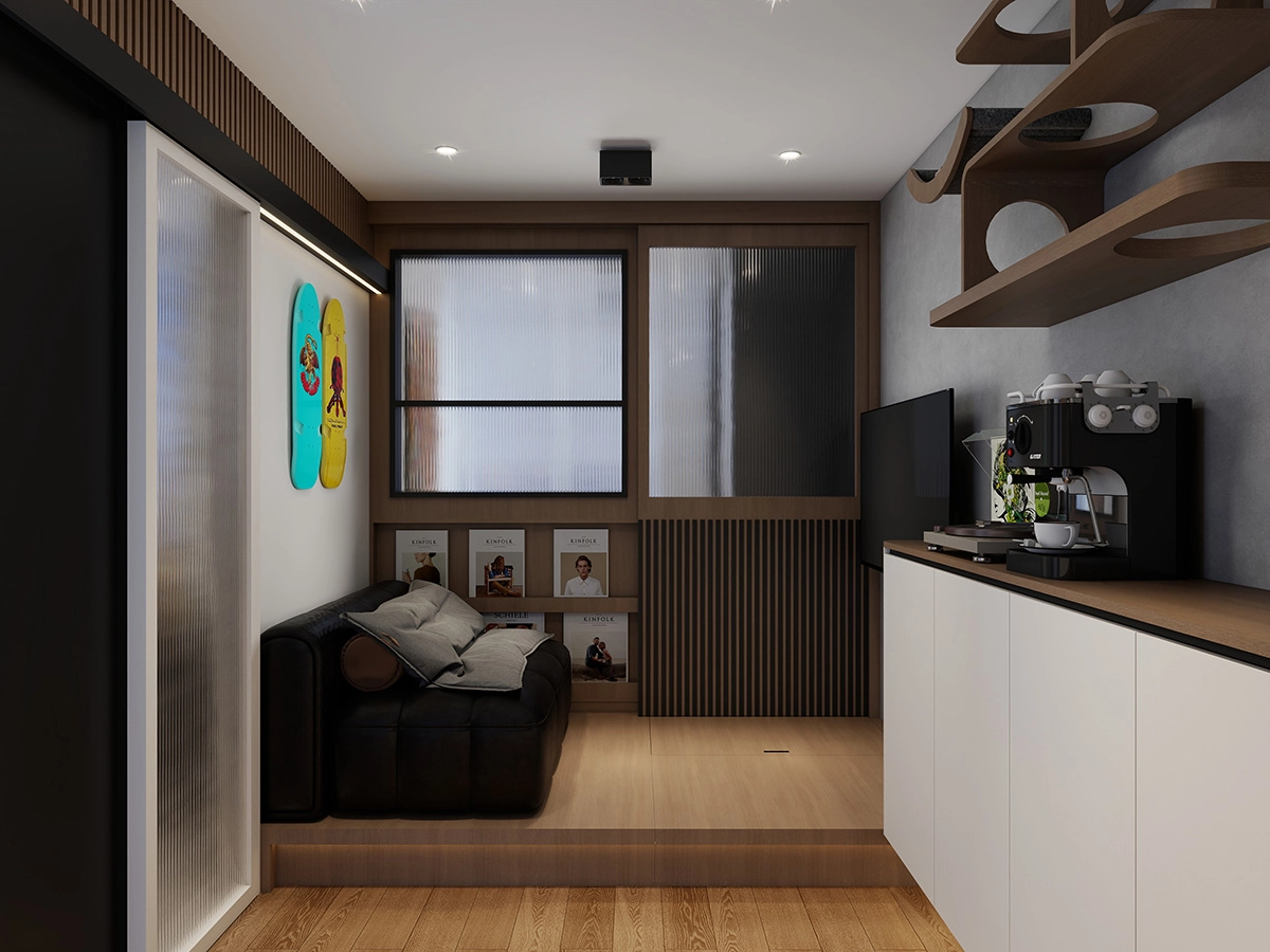 地台床可以配搭書台、衣櫃同升降台一體設計,變成「睡覺 + 工作 + 收納」多功能區。尤其適合細房,一張床搞掂生活所有需求,唔使周圍執位,返工返學趕時間都夠順手。
