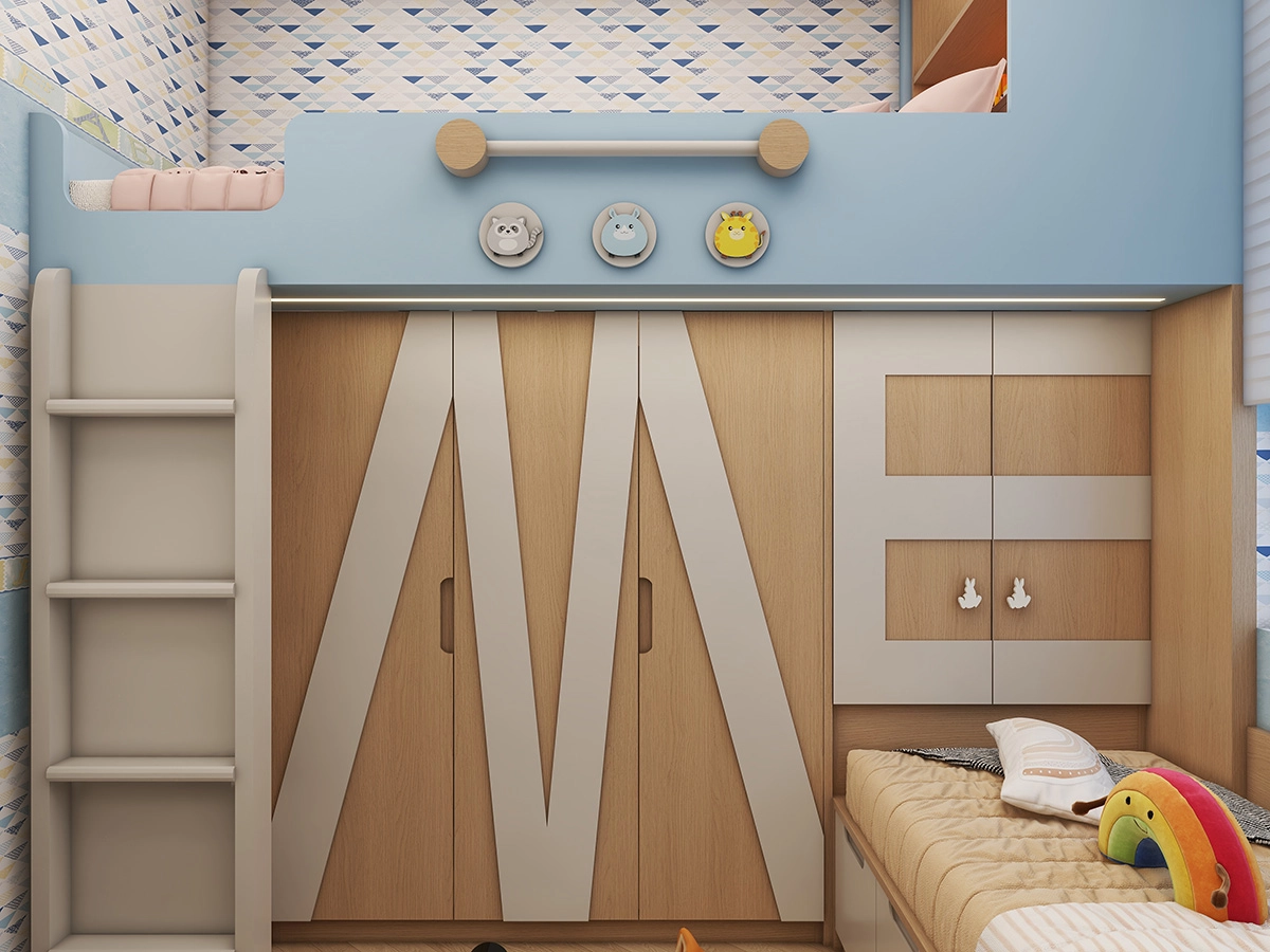 燈光線路預鋪:訂製櫃體加入嵌燈工藝,線燈視線柔和,保護小朋友視力。