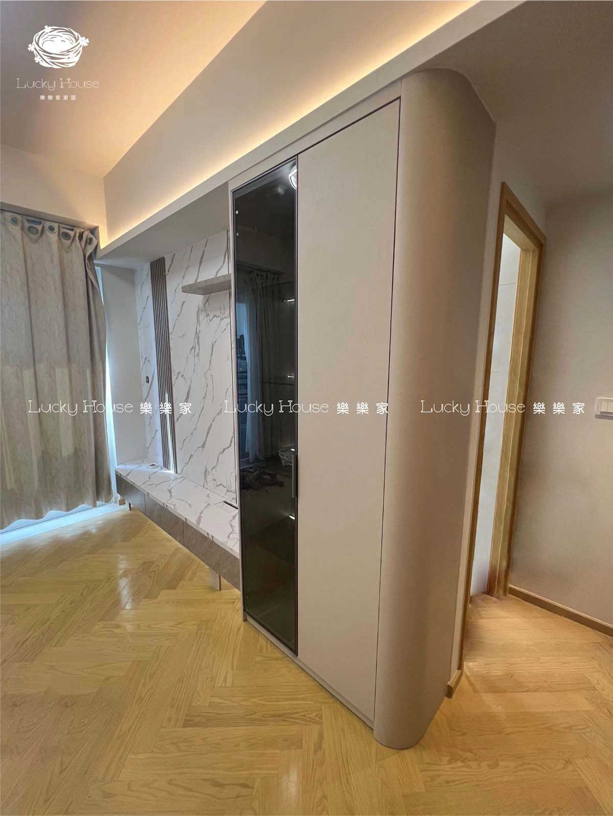 樂樂家呢套現代輕奢設計,無論L型圓弧工藝電視櫃、油壓床定係梳妝台連衣櫃吊櫃,每個部分都好有心思:圓弧工藝唔單止提升安全度,仲把柔和美感拉滿;油壓床為細空間解決儲物難題;梳妝台連衣櫃吊櫃更係將化妝同收納完美結合。