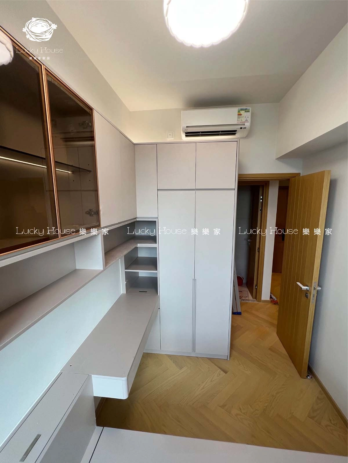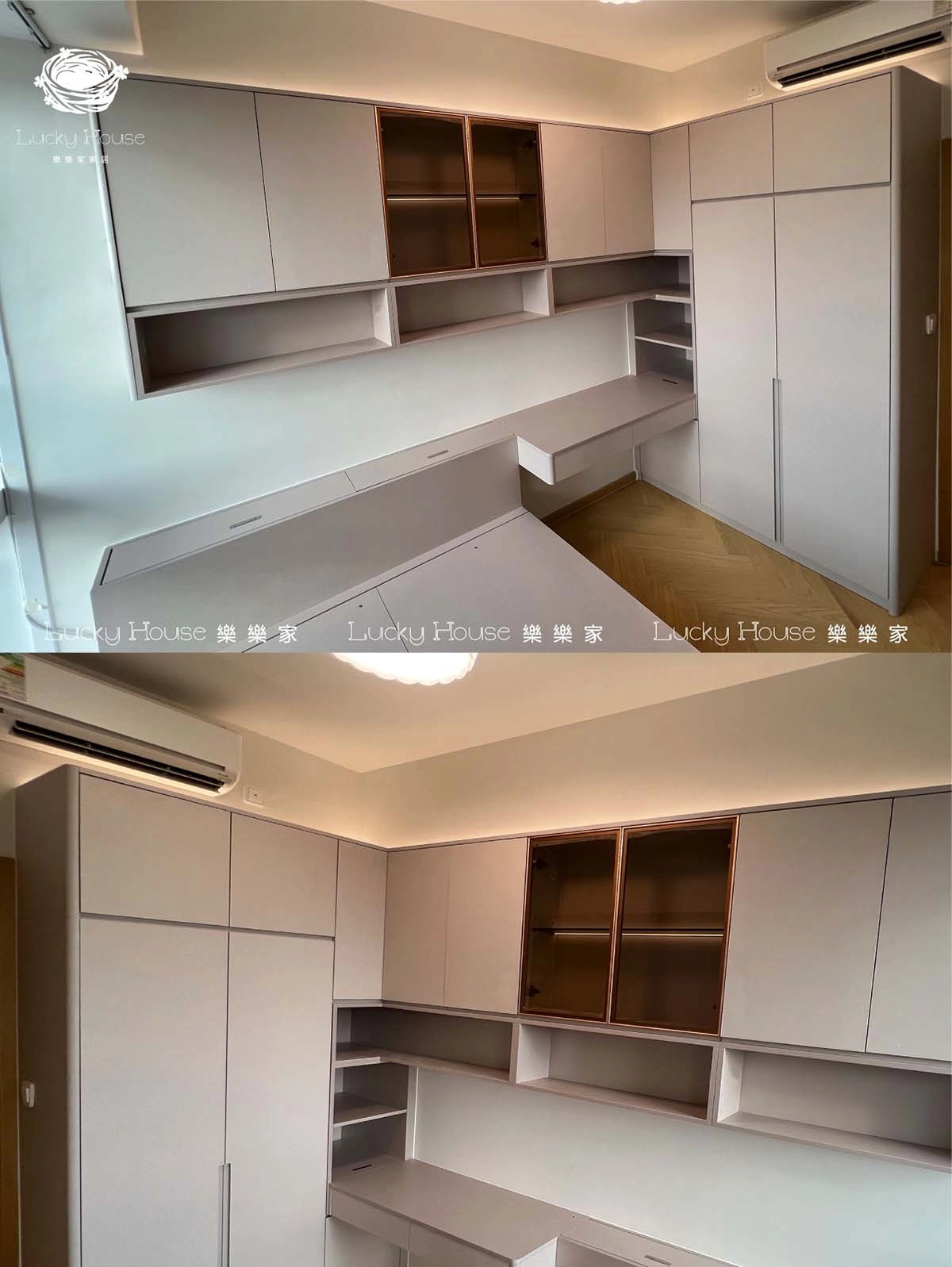 最後講呢個梳妝台連衣櫃吊櫃,見到一定心心眼!成個組合沿住牆身一體化設計,望落好整潔,完全唔會覺得亂。