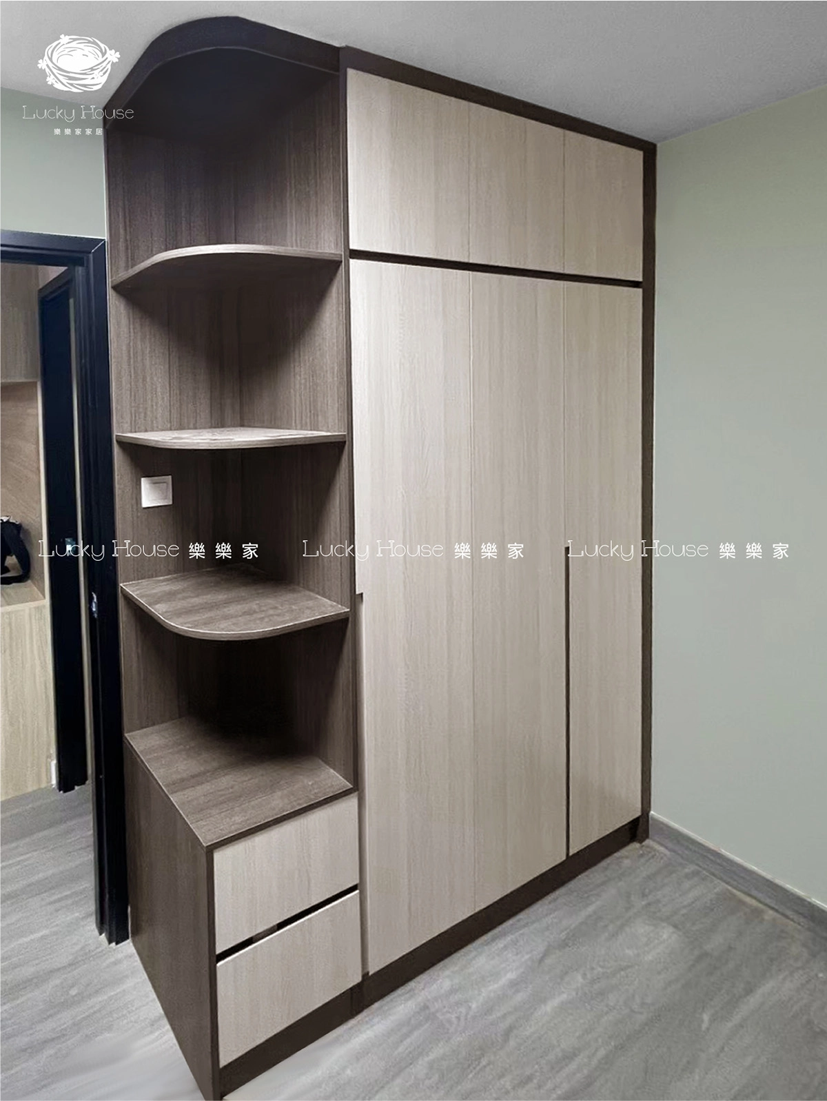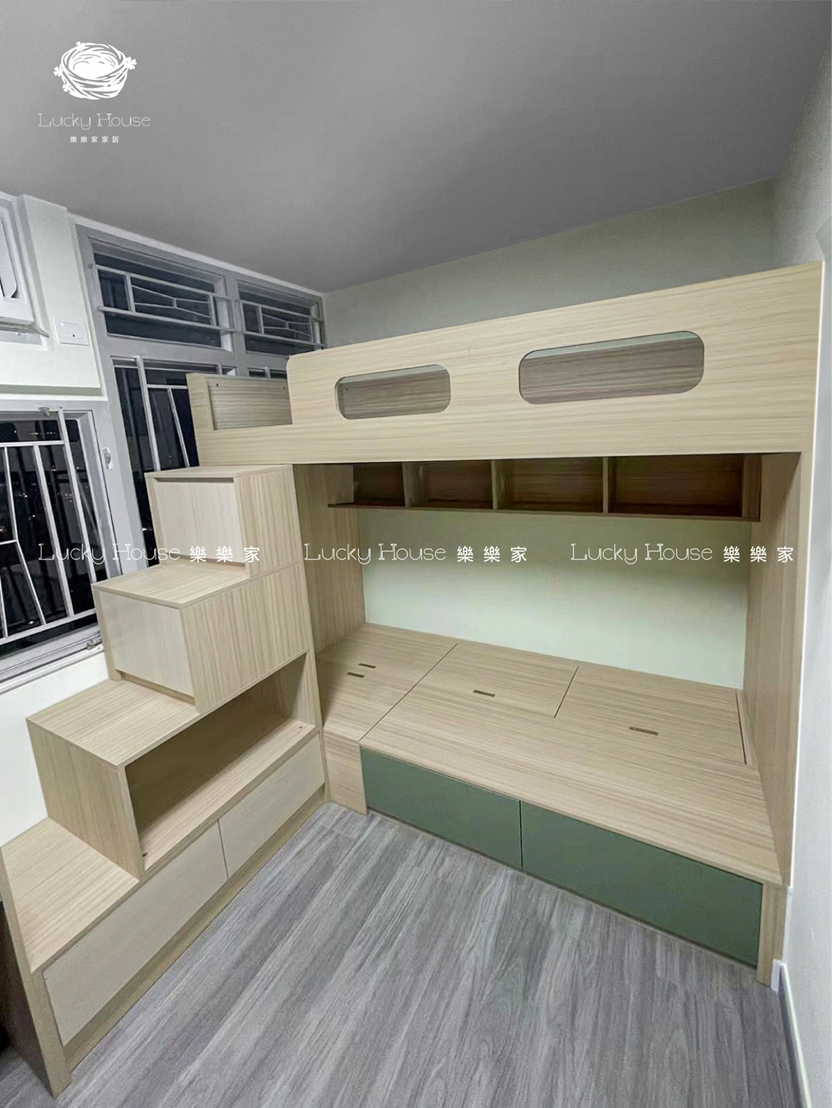 梯櫃一體鏈接書檯-屯門建生邨康生樓整體風格采用簡約木紋設計,回歸自然。合理利用空間,能收納更多物品。····················#傢私訂造 #傢私設計 #全屋訂造 #全屋訂製 #室內設計 #衣櫃 #地台床 #書桌 #玄關櫃 #收納 #兒童房